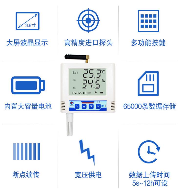 建大仁科RS-WS-GPRS/4G-6系列是基于GPRS傳輸?shù)臏貪穸茸兯推鳎恍枰粡堃苿?dòng)或聯(lián)通的SIM卡(4G選型支持全網(wǎng)通),采用大屏液晶顯示,具有溫濕度上下限雙控,限值自由設(shè)置,溫度、濕度憑密碼校準(zhǔn),GPRS數(shù)據(jù)傳輸?shù)裙δ埽瑑?nèi)部集成報(bào)警功能模塊(蜂鳴器和繼電器),可實(shí)現(xiàn)超高、低溫、高、低濕時(shí)報(bào)警。產(chǎn)品采用瑞士原裝溫濕度測(cè)量單元,具有測(cè)量精度高,抗干擾能力強(qiáng)等特點(diǎn)。