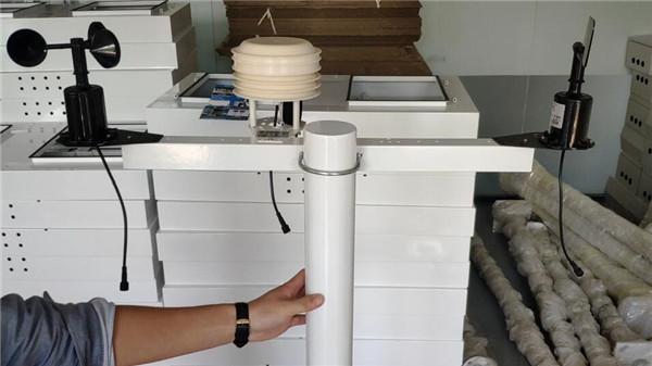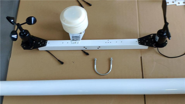 用托片將百葉盒、風速傳感器、風向傳感器依次固定在橫梁上,風向安裝時需注意傳感器上的箭頭必須正沖北方,避免測量誤差。
