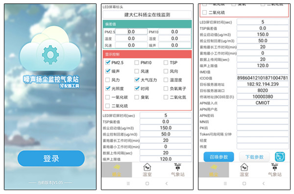 下載安裝配置工具,在揚塵主機開機的狀態(tài)下搜索無線網(wǎng)并連接。然后點擊下好的配置軟件,不需要賬號和密碼即可配置顯示標頭、噴淋上下限等參數(shù)。
