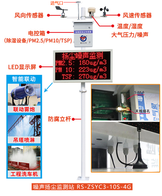 由于建筑工地往往集中于人口密集的城市地區,因此工地揚塵對空氣質量的影響日益受到關注,為了有效監控建筑工地揚塵污染,接受市民的監督和投訴,共建綠色環保建筑工地?;谶@些原因,我們不僅要監測工地上的PM2.5,還要對溫濕度、PM10、噪聲、風速風向等環境數據進行在線監測。