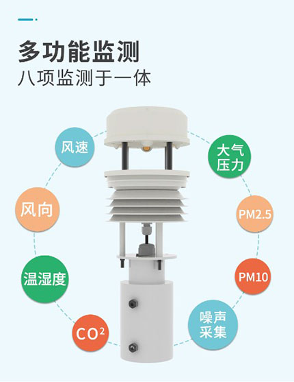 該一體式氣象站可廣泛適用于環境檢測,集風速、風向、溫濕度、噪聲采集、PM2.5 和 PM10、CO2、大氣壓力于一體,設備采用標準 MODBUS-RTU 通信協議,RS485 信號輸 出,通信距離最遠可達 2000 米,可將數據通過 485 通信的方式上傳至客戶的監控軟件或 PLC 組態屏等,也支持二次開發。 該產品廣泛適用于需要測量環境溫濕度、噪聲、空氣質量、CO2、大氣壓力等各種場合, 安全可靠,外觀美觀,安裝方便,經久耐用。